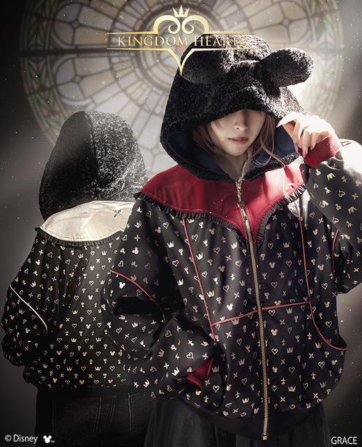 またソラとリクモデルのフードには、ミッキーマウスの耳モチーフが立体的に配置された。愛らしさとともに、作品世界の象徴的存在を感じられるデザインだ。フードを被れば、王様ミッキーのような出で立ちになる。