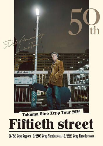 ¢¡¡ÖTakuma Otoo Zepp Tour2026 Fiftieth street¡×¡¡3·î8Æü»¥ËÚ¡ÊZepp Sapporo¡Ë¡¢Æ±20ÆüÂçºå¡ÊZepp Namba¡Ë¡¢Æ±22ÆüÅìµþ¡ÊZepp Haneda¡Ë¤Ç¡¢¤¹¤Ù¤Æ¸á¸å4»þ³«¾ì¡¢Æ±5»þ³«±é¡£Á´ÀÊ»ØÄê9500±ß¡ÊÀǹþ¡Ë¡£¾ÜºÙ¤Ï¥¯¥ê¥¨¥¤¥Æ¥£¥Ö¥ª¥Õ¥£¥¹¥¥å¡¼¤ÎHP¤Ç¡£