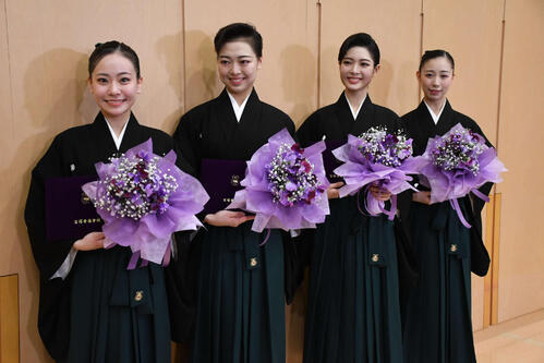タカラジェンヌを育成する宝塚音楽学校112期生40人の卒業式が2日、兵庫・宝塚市の同校で行われ式典終了後、成績上位の代表4人が取材に応じた。