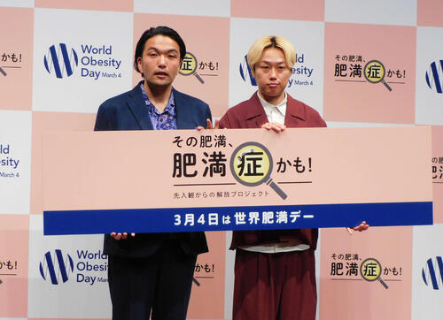 お笑いコンビ見取り図が3日、都内で、「その肥満、肥満症かも!」プロジェクト発表記者会見に登壇した。