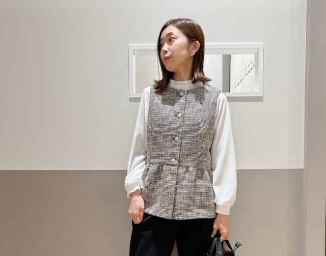 ブラウスの重ね方によって雰囲気を変えることができますし、ジレを着ることでスタイルをよく見せるアイテムとしても活躍しますので、ぜひ活用してみてくださいね。