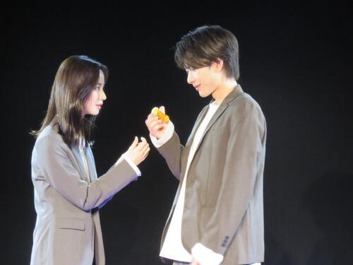 人事担当の重田くるみ役の仲美海(24)は「皆を後ろから、少し引いて見る役でした。うそを信じないと言えない役が多かったんですが、自分と役のどっちがうそをついているのか見極めないといけないせりふが難しかったです」と話した。
