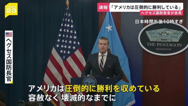 イランへの攻撃をめぐり、先ほど、アメリカのヘグセス国防長官が記者会見を行い、「アメリカは圧倒的に勝利している」と強調しました。