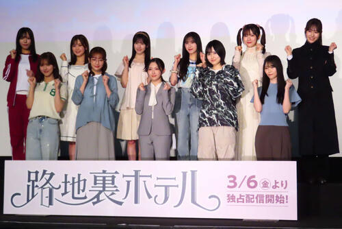 櫻坂46の3期生11人が5日、都内でLeminoオリジナルドラマ「路地裏ホテル」完成披露試写会に出席した。