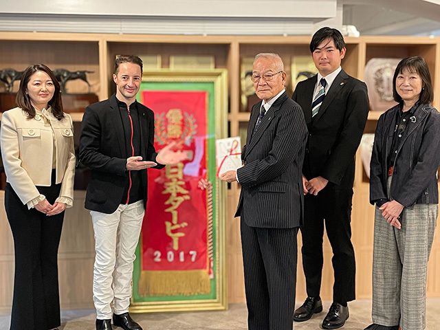 贈呈式の様子(c)netkeiba アパレルブランド「CL by C.ルメール」は2日、有限会社キャロットファームで一般社団法人全日本学生馬術連盟に寄付金44万6195円(税込)の目録を贈呈した。同ブランドは昨年にキャロットファームとのコラボしたアイテム4点を発表。その売上の5%を未来の業界を担う若者たちの活動を支援するため、同団体に寄付した。