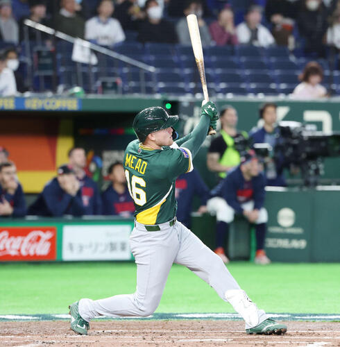 メジャー3年目のミードは、昨季途中にレイズからトレードでホワイトソックスに移籍した期待の若手。昨季は2球団でメジャー自己最多の90試合に出場し、打率2割3分3厘、3本塁打、19打点、5盗塁。内野すべてを守ることができ昨季は一塁を最も多く守ったが、村上宗隆内野手(26)が加入したため、今季は三塁メインになる見込み。代表チームでも三塁に入り、2番を打っている。村上とは同じ内野手として行動をともにすることも多く、この日の試合前「彼とはたくさん話をしているよ」と話していた。