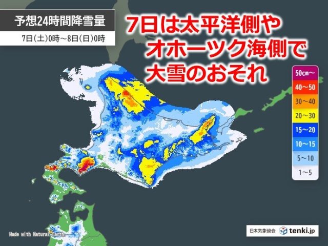 4日水曜日に十勝地方を中心に大雪となった北海道ですが、今週末の7日から8日は広く雪や雨が降り、再び大雪となるおそれがあります。特に明日7日は雪の中心が太平洋側やオホーツク海側の山沿い、山間部となり、先日大雪となった地域でも雪の量が多くなる可能性があります。また、8日には日本海側を中心に風も強まるため、ふぶく所もあるでしょう。低気圧の発達の程度によっては、暴風や猛ふぶきとなるため、最新の気象情報に注意して下さい。