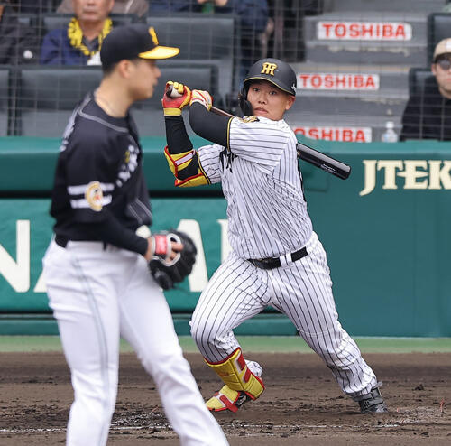 嶋村は春季キャンプを主力中心の宜野座組で完走。同キャンプ中の対外試合では6打数4安打と大活躍し、藤川球児監督(45)が9人挙げたMVPの1人に指名されていた。