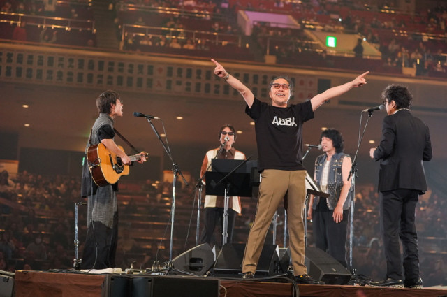 ここでは、千穐楽8日(日)ラストの「弓取式セッション」のライブ写真をお届け。川崎鷹也、YO-KING(真心ブラザーズ)、峯田和伸(銀杏BOYZ)、トータス松本、小澤征悦が参加した。