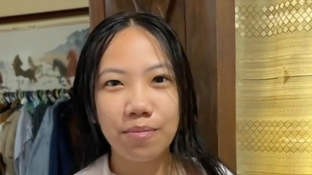 動画の冒頭に登場するのは、ドレスアップ前のkimさん。白いシャツ姿にノーメイク、髪は濡れたままのストレートヘアというラフな装いで、どこか親しみやすい“素朴な女の子”といった印象を受けます。