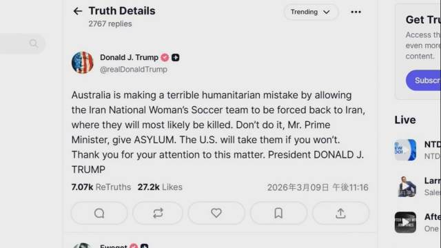 ただ、トランプ氏が投稿した「オーストラリアがイラン代表チームの強制送還を認めた」という情報は現時点では事実かどうか、確認できません。