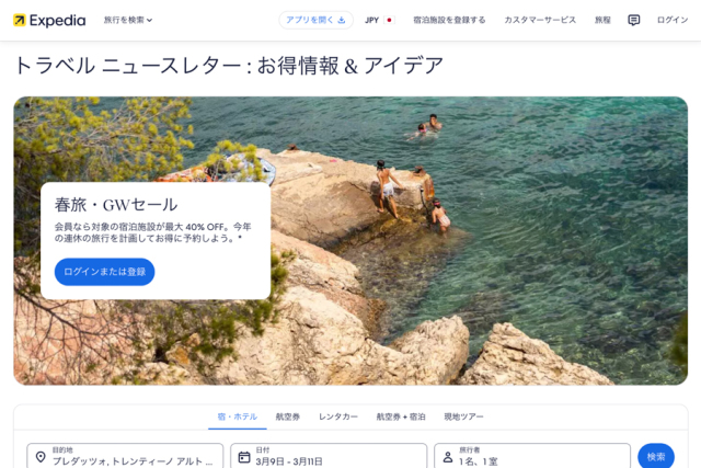 エクスペディア(Expedia)は、「春旅・GWセール」を2月16日から3月23日まで実施する。