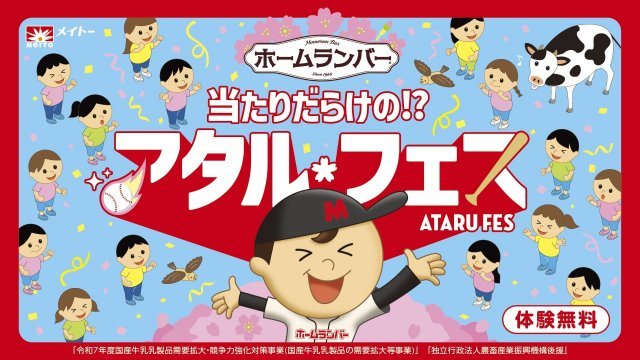 ホームランバー『当たりだらけの!?アタルフェス』開催 協同乳業は、日本初の当たりつきアイスとして発売した『ホームランバー』の体験型ポップアップイベント『当たりだらけの!?アタルフェス』を25日から27日の3日間、千葉・イオンモール幕張新都心のグランドモール1階「グランドコート」にて開催する。