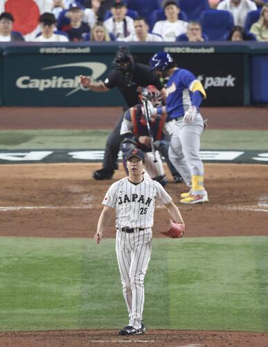 5番トーバーに二塁打を浴びて大会初被安打。6番トーレスの打席で、二塁へけん制もボールが上ずって悪送球。ボールがセンターへ転がっていく中でトーバーが二塁から一気に生還した。