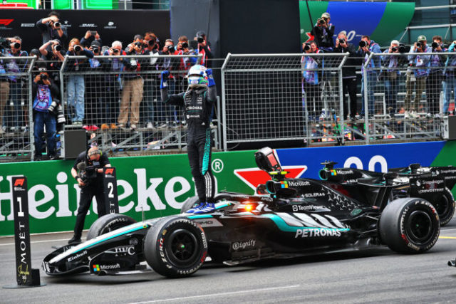 2位にジョージ・ラッセル(メルセデス)、3位にフェラーリ移籍後初の表彰台獲得となるルイス・ハミルトンが続いた。