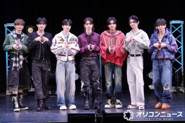 全国47都道府県ツアー開催をは発表したaoen(左から)京助、優樹、礼央、颯太、雅久、輝、琉楓 (C)ORICON NewS inc. HYBEの傘下レーベル・JCONICが手掛ける新世代J-POPボーイズグループ・aoen(読み:アオエン)が16日、都内で2ndシングル「秒で落ちた」発売記念イベントを開催。47都道府県をまわるツアーの実施をサプライズ発表した。