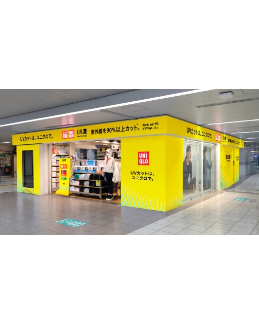 写真 「ユニクロ(UNIQLO)」が、UVカット商品を取り扱う駅構内の対象7店舗を黄色のラッピングで装飾した「黄色いユニクロ」を、本日から5月下旬まで実施する。対象店舗は、JR池袋中央1改札内店、ヤエチカ店、ウィング新橋店、京都駅八条口店、阪急大阪梅田駅店、なんばウォーク店、成田空港第2ビル店。