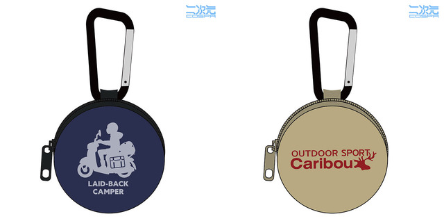 「カラビナ付きミニポーチ」は、「シルエットバイク志摩リン」と「カリブー」の2種展開。中身を取り出しやすい形状の手のひらサイズのポーチで、本体には鞄やベルトループへの取り付けに便利なカラビナが付いている。