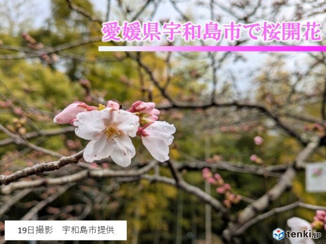 本日3月19日(木)、愛媛県宇和島市で桜が開花しました。四国では太平洋側から桜前線が北上中です。来週にかけて、そのほかの四国各地で続々と開花の便りが届くでしょう。