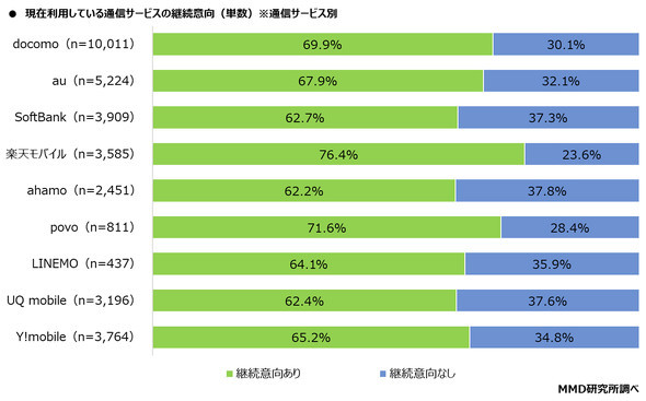¡¡¸½ºßÍøÍѤ·¤Æ¤¤¤ëÄÌ¿®¥µ¡¼¥Ó¥¹¤«¤é¾¤ÎÄÌ¿®¥µ¡¼¥Ó¥¹¤Ø¶ñÂÎŪ¤Ê¾è¤ê´¹¤¨Àè¤ò¸¡Æ¤¤·¤Æ¤¤¤ë6241¿Í¤òÂоݤˡ¢¾è¤ê´¹¤¨Àè¤È¤·¤ÆºÇ¤â¸¡Æ¤¤·¤Æ¤¤¤ëÄÌ¿®¥µ¡¼¥Ó¥¹Ê̤Ǹ½ºßÍøÍѤ·¤Æ¤¤¤ëÄÌ¿®¥µ¡¼¥Ó¥¹¤òÈæ³Ó¤·¤¿¡£³ÚÅ·¥â¥Ð¥¤¥ë¡¢MVNO¡¢ahamo¡¢¥½¥Õ¥È¥Ð¥ó¥¯¡¢au¡¢LINEMO¤Ï¡ÖNTT¥É¥³¥â¡×¡¢Y!mobile¤Ï¡Ö¥½¥Õ¥È¥Ð¥ó¥¯¡×¡¢UQ mobile¡¢povo¤Ï¡Öau¡×¡¢NTT¥É¥³¥â¤Ï¡Öahamo¡×¤È¤Ê¤Ã¤¿¡£