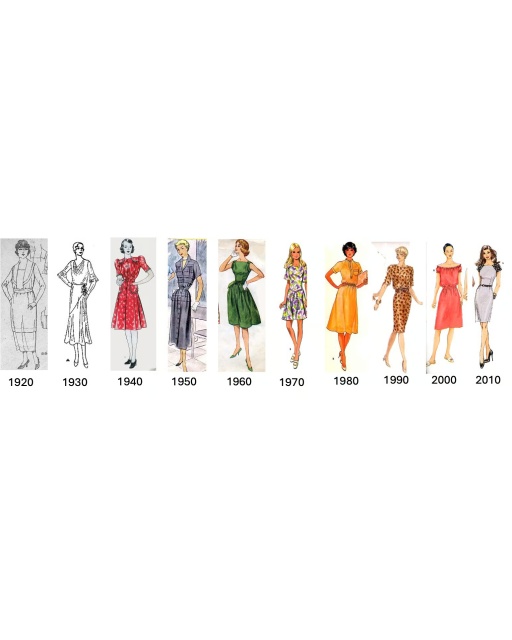 Representative dresses from 1920 to 2010.