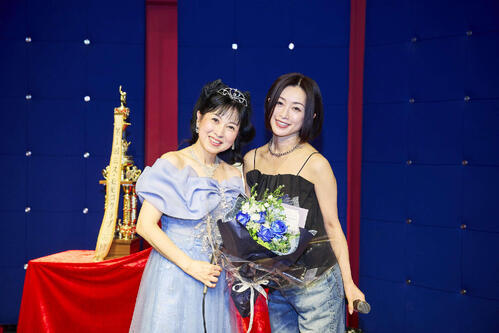 昼公演にはサプライズゲストで86年組同期の酒井法子(55)が登壇。花束を手に「碧いウサギ」をBGMに登場すると、「知美ちゃん、40周年おめでとうございます!」と祝福した。