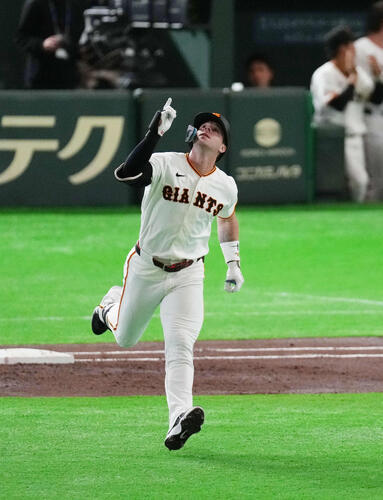 巨人対楽天 1回裏巨人無死、先制ソロ本塁打を放つキャベッジ(撮影・増田悦実)<オープン戦:巨人3−0楽天>◇21日◇東京ドーム