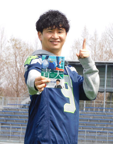 アメフト用語でボールを渡すことを意味するハンドオフ。小説の舞台が高校のアメフト部であることから、この日、参加者は若林から本を受け取ると、所定のラインまでダッシュしてタッチダウン。担当者から「世界で初めてのお渡し会」と紹介され、心地よい春の日差しの下で広大なフィールドを駆け抜けた。