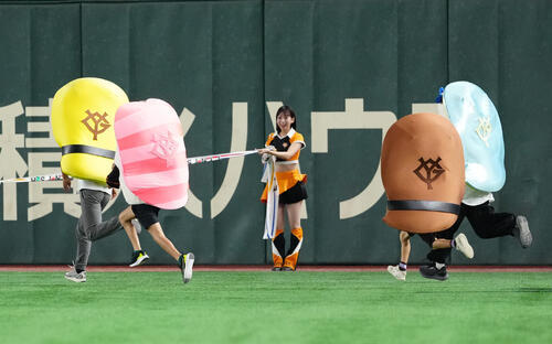 ◆すしレース 4回表終了時にイニング間イベントとして、米国の「ホットドッグレース」のような「すしレース」を開催している。ファン参加型のアクティベーションで出場者は「江戸前スーシーズ」に扮(ふん)して競走する。メンバーはマグロ、コハダ、タマゴ、エビ、アナゴの5体に加え、今季から新メンバーのイカ、ウニ、芽ネギ、かんぴょうの計9体。参加対象は公式ファンクラブ「CLUB GIANTS KIDS MEMBER」で当日の開場から1回裏終了まで応募受け付けし、東京ドーム内ファンクラブブースで抽選によって決定する。