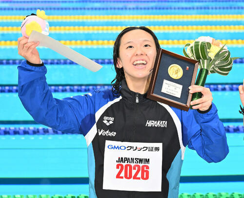 「本当に皆さんの応援が見えて大勢の前で記録を更新できてうれしい。日本記録がゴールではない。スピードや持久力でも世界で戦える選手になりたい」と話した。