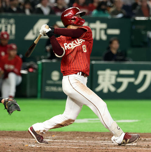 巨人戦に「7番中堅」で出場。2回の第1打席で昨季までチームメートだった則本から中前打を放つ。4回の第2打席では再び右腕から左前打をマークし、すかさず二盗も決めた。