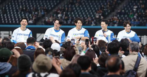 日本ハムのオープン戦最終戦となったヤクルト戦(エスコンフィールド)後、ファンと一部選手との決起集会が初めて開催された。選手会長の清宮幸太郎内野手(26)、開幕4番の郡司裕也捕手(28)と、田宮裕涼捕手(25)、奈良間大己内野手(25)、野村佑希内野手(25)のミレニアム世代が参加。開幕を待ちわびるファンとともに、シーズンに向けた士気を高め合った。