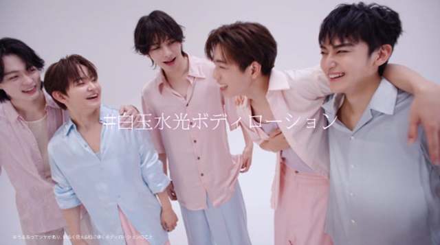 STARGLOWのSTAR(星)にちなみ、星形にあしらわれた「グルタヒア ボディローション」を肌にのせ、なめらかなタッチで塗り広げるシーンも印象的。指先の繊細な動きとともに、ミルクが水のように変化する軽やかなテクスチャーが表現され、製品の特長が自然な所作の中で描かれる。 塗り終えたあと、メンバー同士が顔を見合わせる瞬間や、ふとこぼれる無邪気な笑顔も見どころ。彼らの等身大の柔らかな表情が垣間見え、STARGLOWの飾らない一面を見られるWEB CMとなっている。
