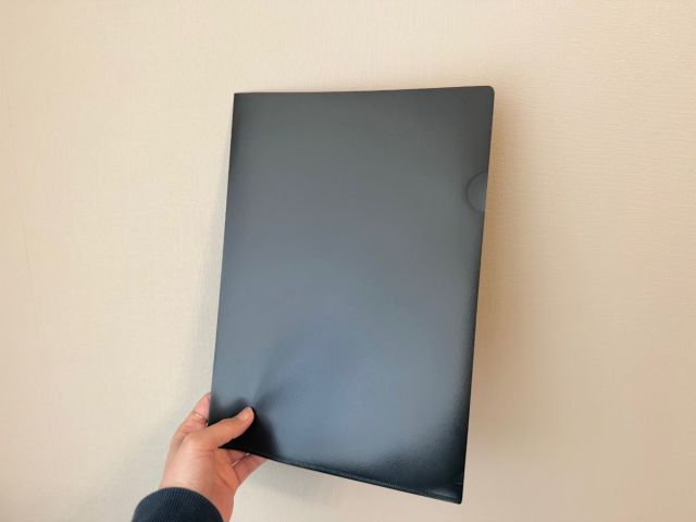 完全に透けないファイルは文具店や100円ショップで探してみても意外と見つからず、ネットで探すと10枚入りで1000円前後。確実になければ困るものではないため、わざわざ買うほどのものでもないか……と購入を見送ってきました。