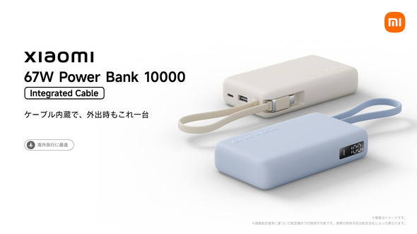 Xiaomi Japanは、3月24日にモバイルバッテリー「Xiaomi 67W Power Bank 10000(Integrated Cable)」「Xiaomi 67W Power Bank 20000(Integrated Cable)」を発売した。価格は3980〜4780円で、4月6日まで早期価格3580〜4280円で購入できる。