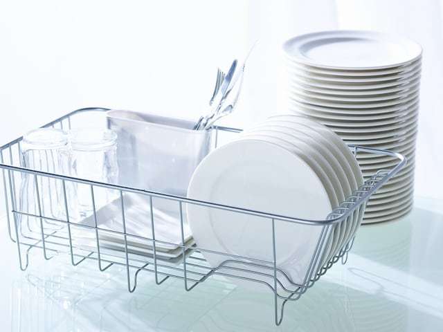 洗った食器を水切りラックに並べて、時間が解決してくれるのを待つスタイルです。|