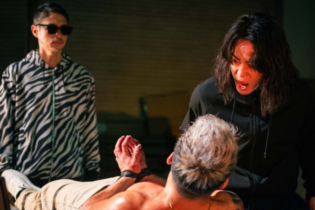 このたび、そんな2人の“拷問”の瞬間を切り取った場面写真が解禁となった。表情一つ変えずにガスバーナーを悪党の顔面に押しつけるカモ。さらに、威圧的に追い詰めるトラの姿が映し出された背筋が凍るショットとなっている。