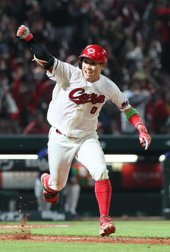 広島の新人が新井監督に就任4年目で初の開幕星をプレゼントした。延長10回2死一、二塁からドラフト3位の勝田成内野手(22)が中日勝野の内寄りの真っすぐをコンパクトに振り抜き、ライナーで右翼線を破った。プロ初安打が試合を決める決勝打。新人の開幕戦サヨナラ打は89年日本ハム中島輝士以来、セ・リーグでは初めてだった。