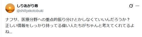 その影響により、人工透析に使うチューブなどの「透析回路」に使用する石油派生品ナフサの供給不足が叫ばれ、X上には28日までにハッシュタグ「#透析が止まる日」まで登場した。その中、漫画家・しりあがり寿氏の「ナフサ、医療分野への重点的振り分けとかしなくていいんだろうか?正しい情報をしっかり持ってる偉い人たちがちゃんと考えてくれてるよね…」との投稿に対する、医師のDr.パパ氏の指摘「医師として言います。考えてくれていません。」が大きな反響を呼んでいる。