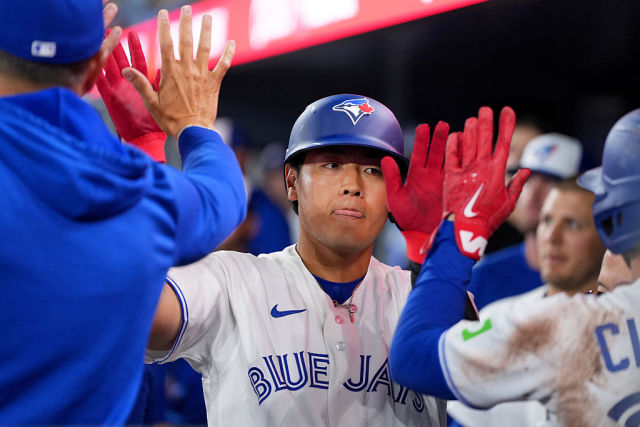 ブルージェイズ・岡本和真(写真=Getty Images)○ ブルージェイズ 3x−2 アスレチックス ●