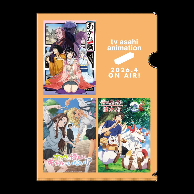 また、『オタクに優しいギャルはいない!?』『神の庭付き楠木邸』『片田舎のおっさん、剣聖になるII』『「きみを愛する気はない」と言った次期公爵様がなぜか溺愛してきます』と26年4月・7月クール放送の新作タイトルが詰まったクリアファイルも用意した。