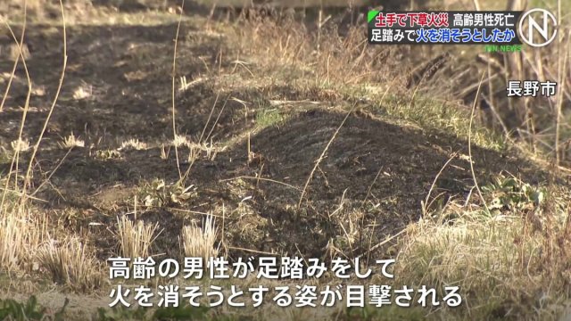 長野市で土手や畑の下草が焼け、焼け跡から80代の男性が遺体で見つかりました。