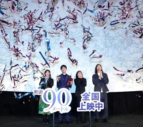 »³»þÁï¿¿¡Ê20¡Ë¤È¿ûÌîÈþÊæ¡Ê48¡Ë¤¬28Æü¡¢¥À¥Ö¥ë¼ç±é±Ç²è¡Ö90¥á¡¼¥È¥ë¡×¡ÊÃæÀî½Ù´ÆÆÄ¡Ë¸ø³«µÇ°ÉñÂæ¤¢¤¤¤µ¤Ä¤òÅÔÆâ¤Ç¹Ô¤Ã¤¿¡£