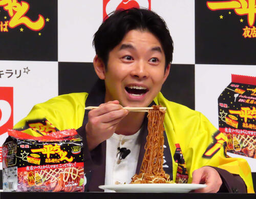 4月6日から、東日本エリア限定で袋めんタイプの焼きそばを発売する。仲野は24年からブランドキャラクターを務め、CMにも出演。「今年も引き続きご一緒できて光栄。31年続く歴史のある商品に携われて感慨深い」と話し、「一平ちゃんはカップ焼きそばのイメージがあるので、袋めんの一平ちゃんは新鮮」と興味津々だった。