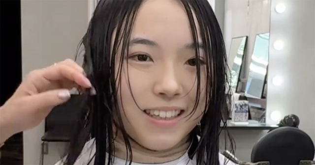 今回の動画には、「部活でリーゼントの男役をするためメンズカットをしてほしい」という女の子が登場します。これまでにメンズカットをしたことがないという女の子は、胸のあたりまで伸びた黒髪のストレートヘア姿。石井さんが「(メンズカット)めっちゃ似合うと思いますよ」と伝えると、女の子は「ほんとですか?」「もうほんとにお任せします!」と笑顔を見せました。