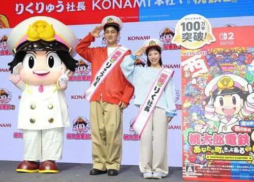 フィギュアスケートペアで2月のミラノ・コルティナオリンピック(五輪)で金メダルを獲得した「りくりゅう」こと三浦璃来(24)木原龍一(33)組(木下グループ)が2日、都内のKONAMI本社(中央区)を訪問し、25年11月発売の「桃太郎電鉄2〜あなたの町もきっとある〜」のPR動画を撮影した。