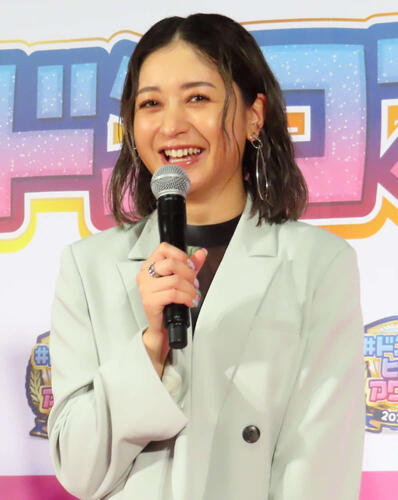 昨年下半期にドン・キホーテで人気を集めた化粧品を表彰するイベント。現在第1子を妊娠中で、この日は大きなおなかを覆うように、ジャケットに身を包んで登壇していた。
