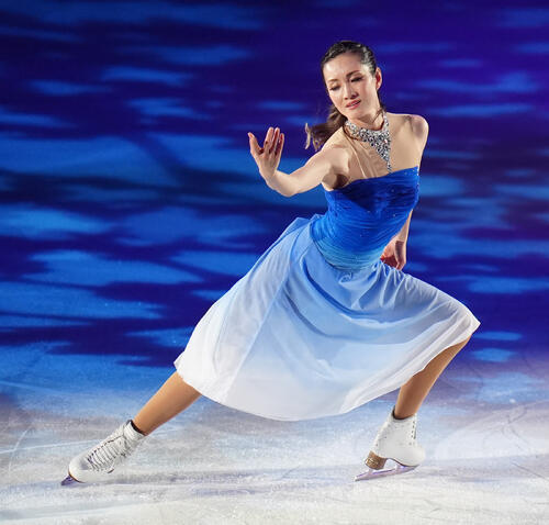 日本フィギュア初の金メダルを獲得した06年トリノオリンピック(五輪)のフリー「トゥーランドット」を披露。青色の衣装に身を包み、左脚のみでリンクを滑るスパイラルや上体を後ろに反らせながら滑るイナバウアーで魅了した。20年前をほうふつとさせる舞いに、観衆からはどよめきが起こった。
