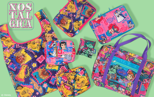 今回は、ディズニー・アニメーション映画『ライオン・キング』『リトル・マーメイド』『ピーター・パン』の3作品がラインアップ。クラシックなディズニーキャラクターを、カラフルでポップな総柄で表現し、日常使いしやすく毎日持ちたくなるアイテムに仕上げられた。