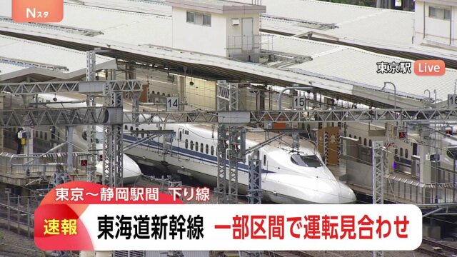 JR東海によりますと、東海道新幹線は静岡駅と新富士駅の間で線路内に人が立ち入った影響で、現在、下り線は東京駅から静岡駅の間で、上り線は静岡駅から新富士駅の間で運転を見合わせています。